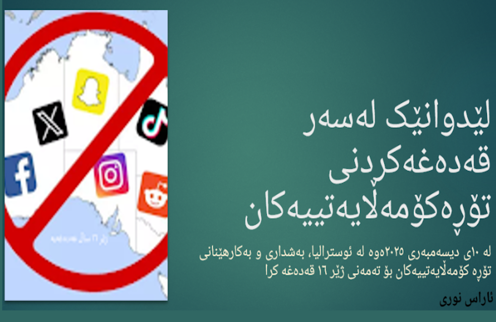 ە ١٠ی دیسەمبەری ٢٠٢٥ەوە لە ئوسترالیا، بەشداری و بەکارهێنانی تۆڕە کۆمەڵایەتییەکان بۆ تەمەنی ژێر ١٦ قەدەغە کرا. لەوەیە هەواڵەکە زۆر لە کۆمپانیا و دابینکارانی تۆڕەکانی شڵەژاندبێ، یا هەرزەکارانی توڕەکردبێت، کە لە دیدی وەزیر و کاربەدەستانی حکومەتی ئوسترالیا، بڕیاڕێکی سەنگینە و زۆر گرفتی پەروەردە و ژیریی چارە دەکا[١].